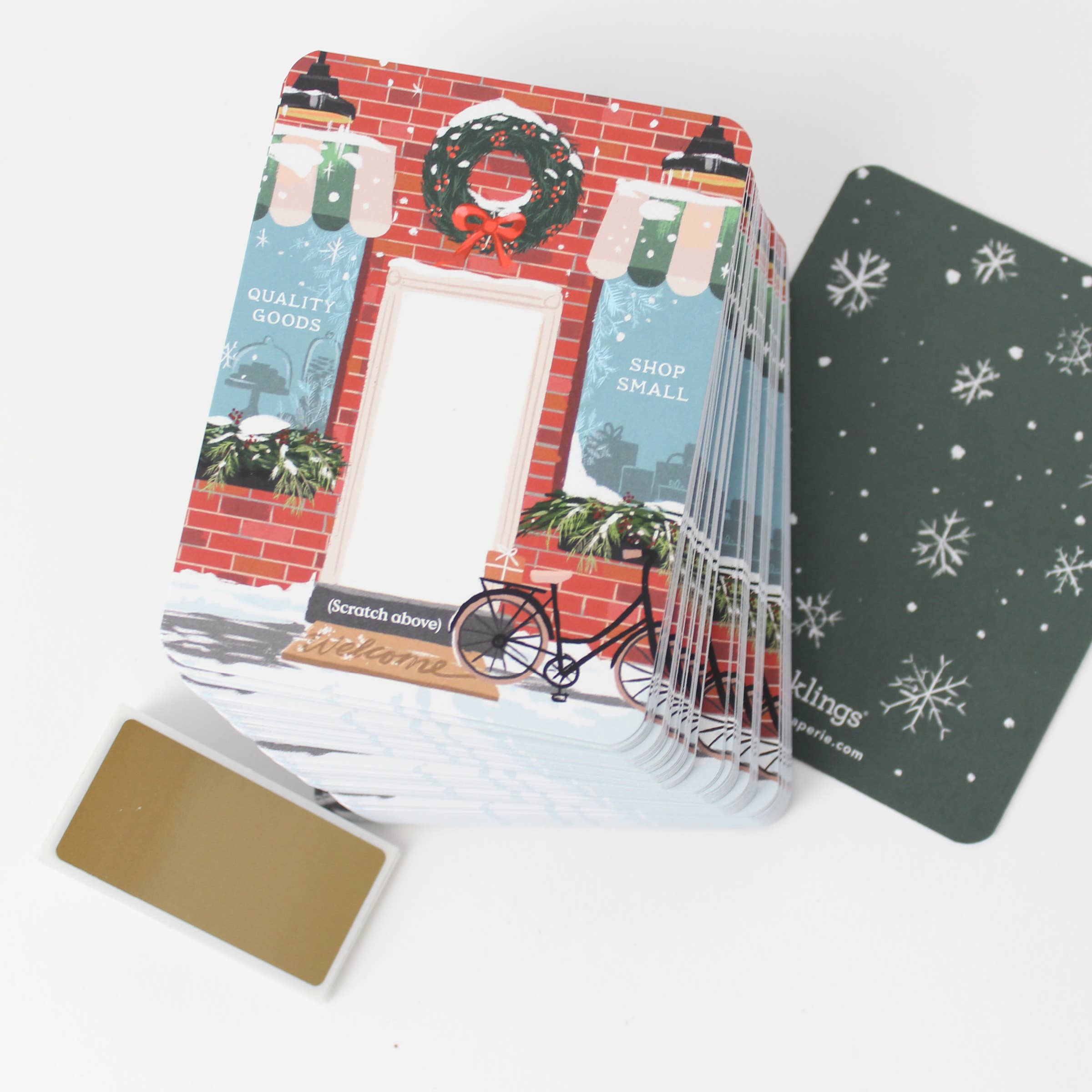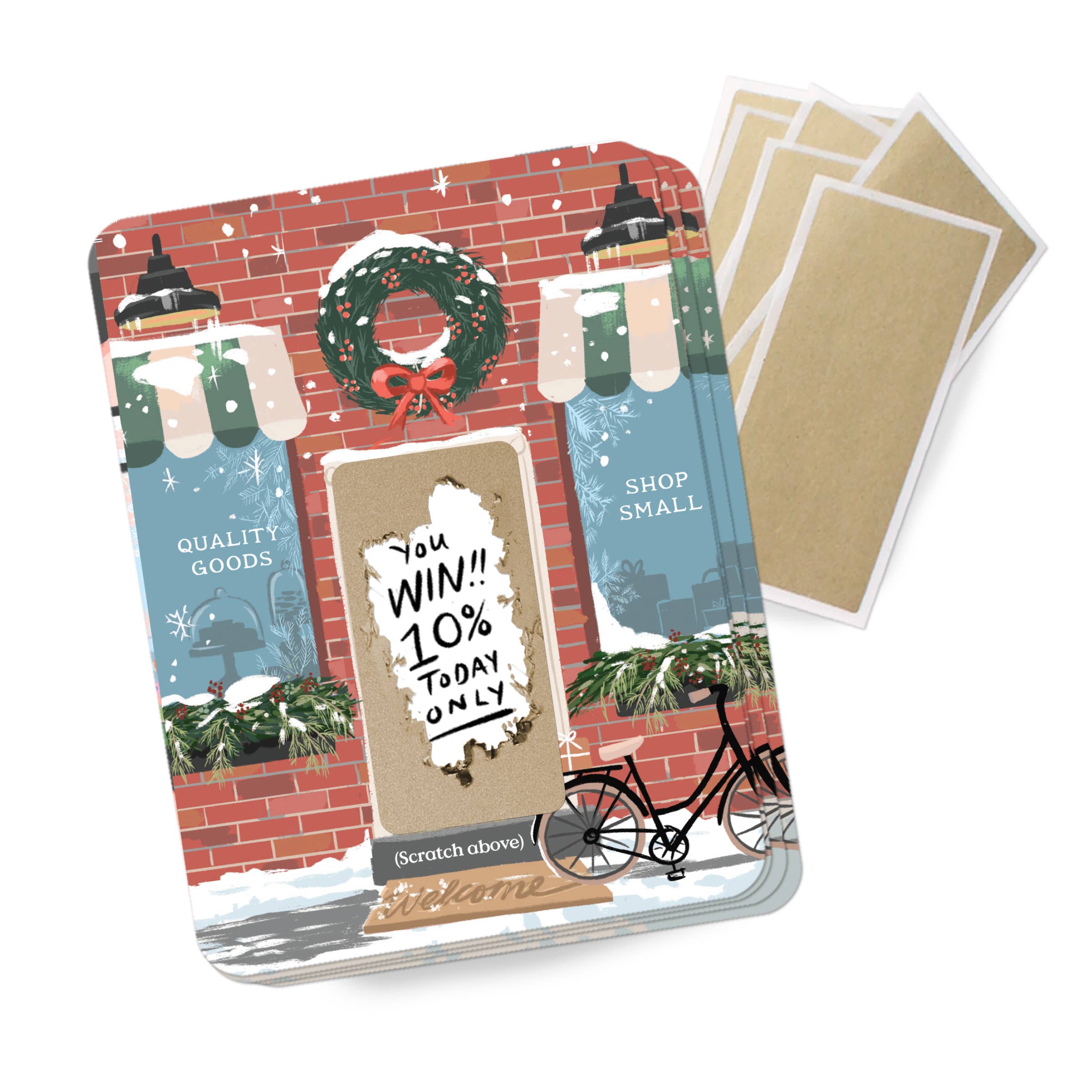 New style for 2025! Create your own scratch-off cards to build loyalty and customer retention! Each set includes 100 blank cards and 100 stickers with instructions. Using a ballpoint pen, write a short message or discount and cover it with the included scratch-off sticker.