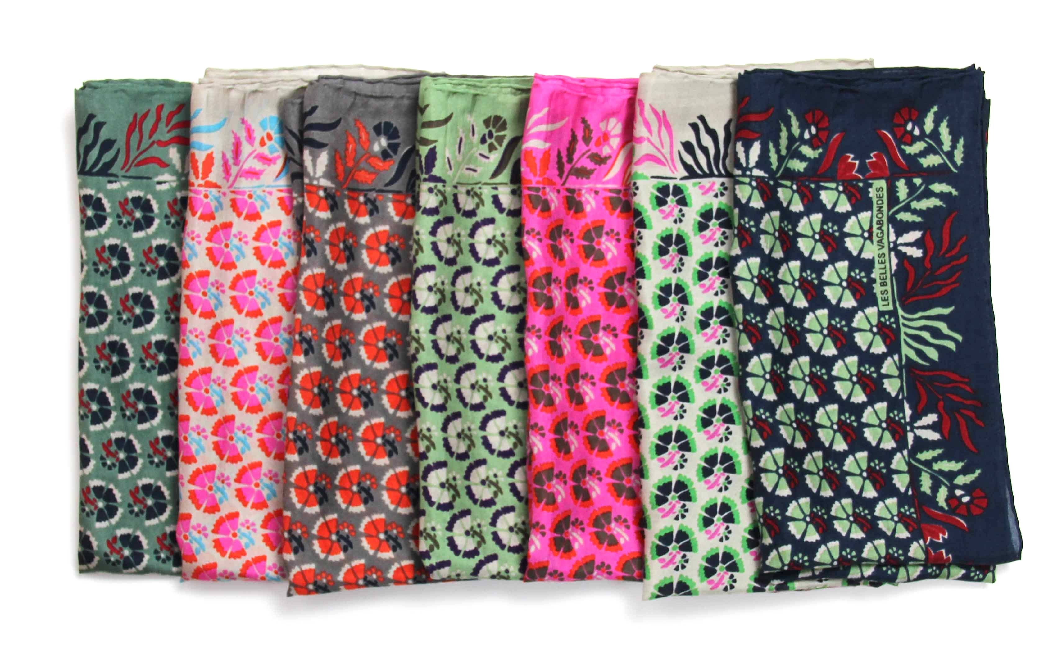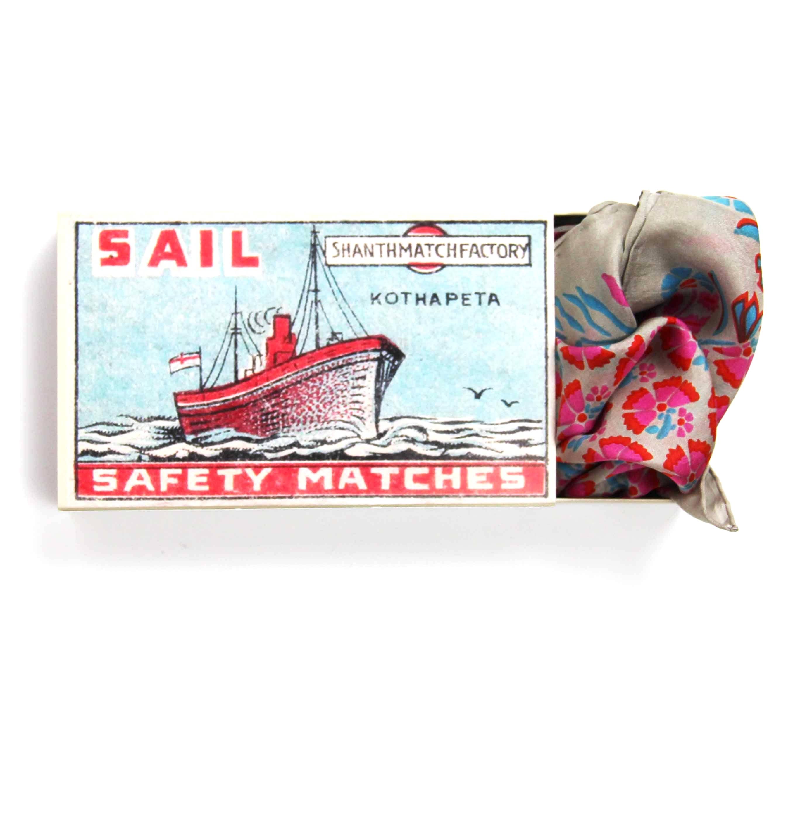 Mini Scarves make an original gift, they can be worn around the neck, around the wrist, as a headband, in a bun or even around the bag... They are drawn by hand in France and printed by hand in India. They have an exceptional finish with a hand-rolled hem. They are sold in a box inspired by vintage matchboxes. 100% silk 50 x 50 cm Hand drawn in France Hand printed in India
