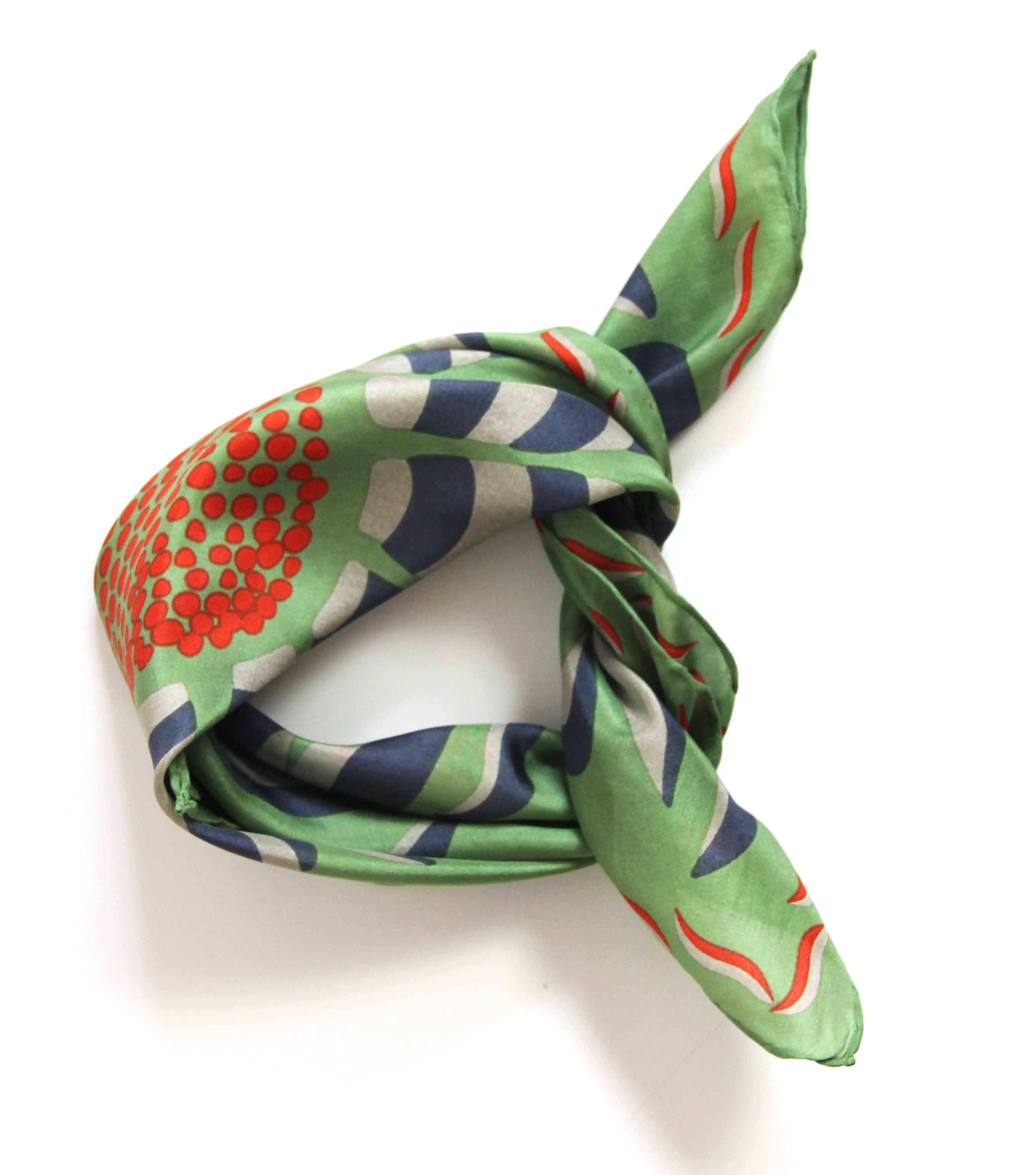 Mini Scarves make an original gift, they can be worn around the neck, around the wrist, as a headband, in a bun or even around the bag... They are drawn by hand in France and printed by hand in India. They have an exceptional finish with a hand-rolled hem. They are sold in a box inspired by vintage matchboxes. 100% silk 50 x 50 cm Hand drawn in France Hand printed in India