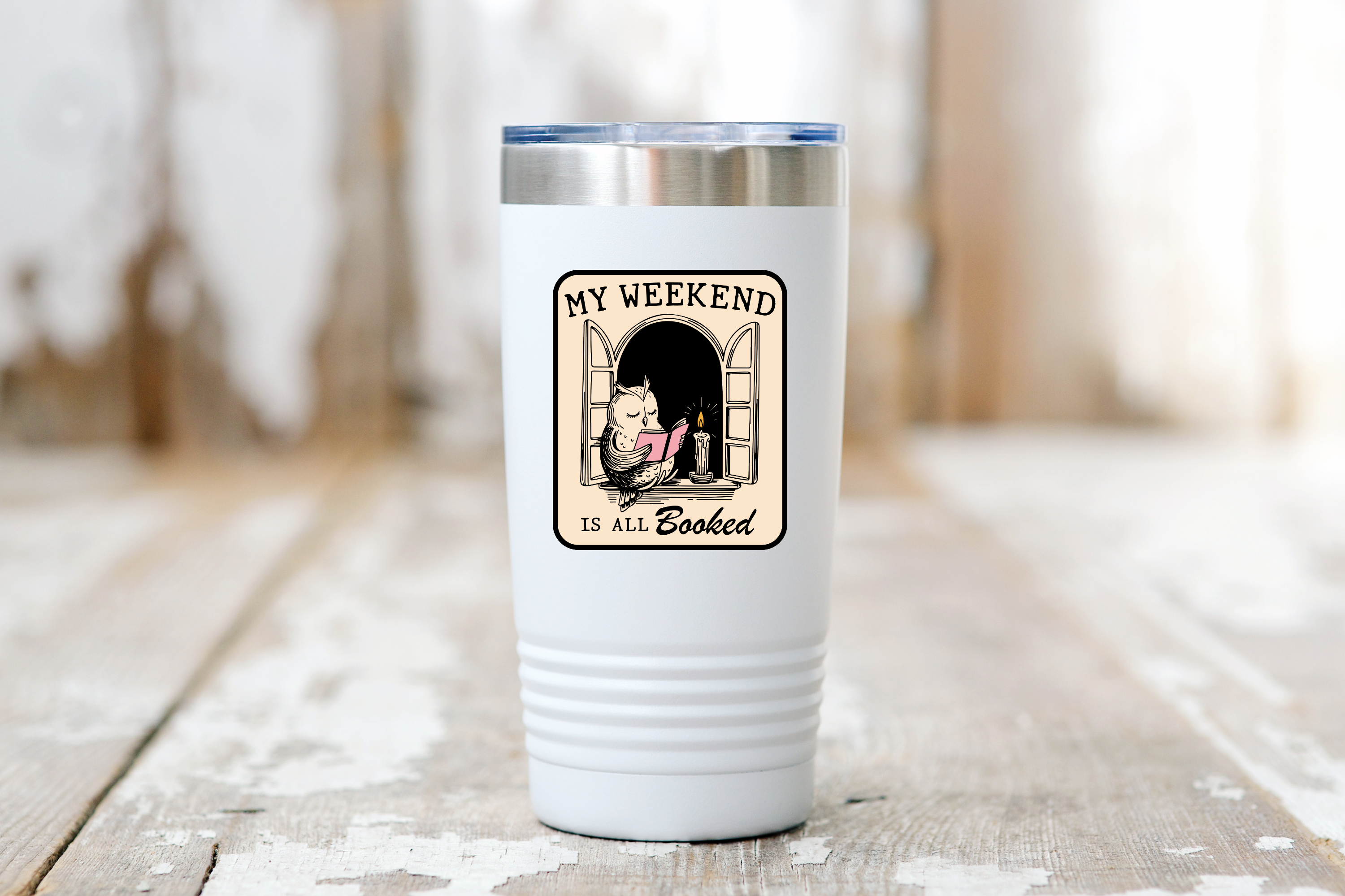 My Weekend is All Booked Sticker - bookshop, bookstore, owl