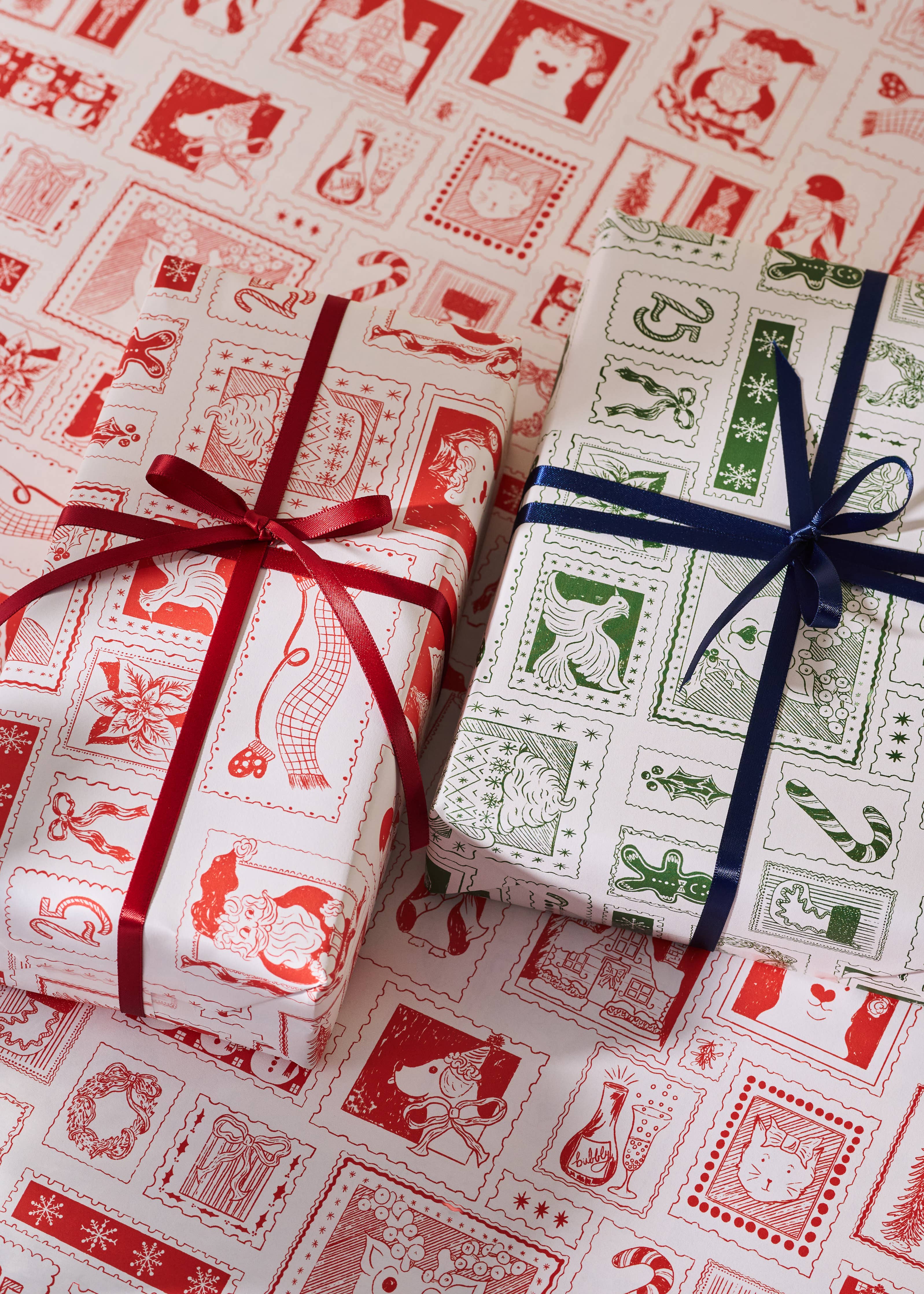 Make spirits brighter with beautifully wrapped gifts, thanks to these gorgeous double-sided wrapping paper sheets! Send some holiday cheer with these illustrated stamps straight from the north pole — a delightful nod to seasonal greetings for your gifts. Each sheet features two unique illustrated patterns, so you don’t have to choose, and the thick, smooth paper guarantees compliments with every gift. This set includes three double-sided sheets, each measuring 20 x 29 inches—plenty for wrapping a generous stack of presents. Sheets arrive rolled for easy storage and use. Bulk orders (100 pieces or more) are also available! Simply direct message us on Faire with the products + quantity you would like to purchase in bulk, and we will set up your bulk order!